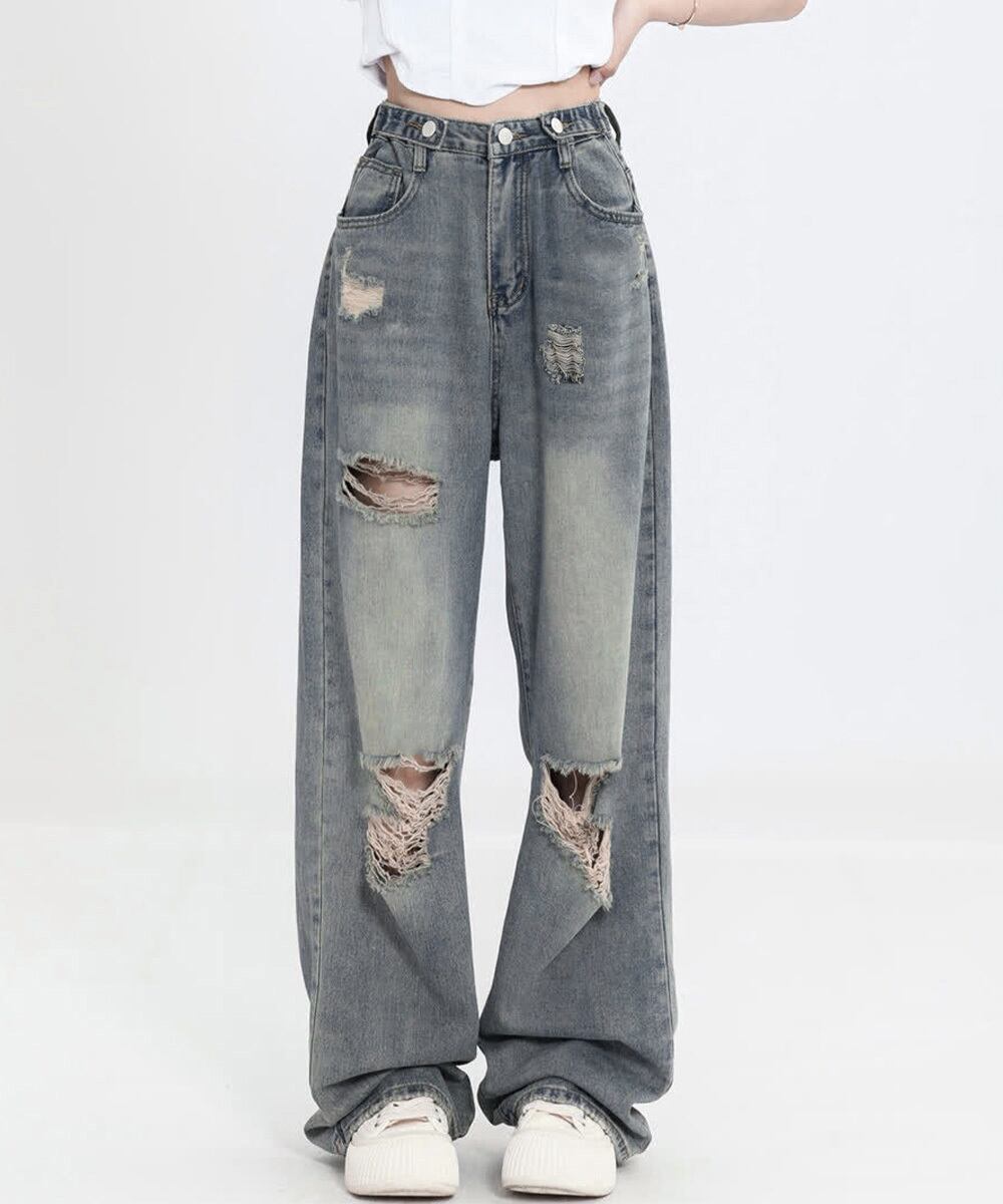 このセミワイドダメージジーンズで、あなたのスタイルにトレンド感とカジュアルさを取り入れ、素敵なコーディネートを楽しんでみてはいかがでしょうか!
