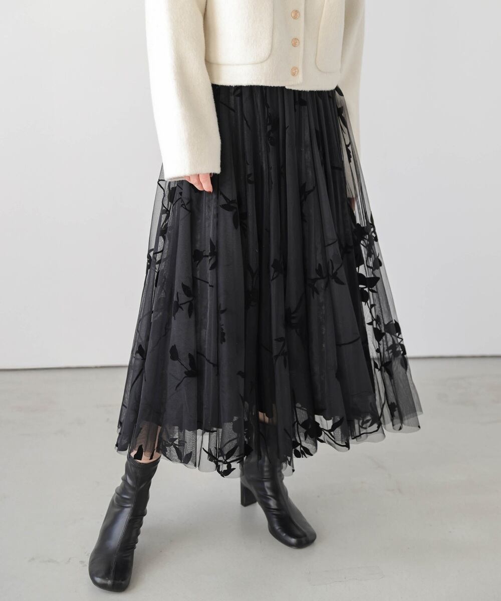 おしゃれチュール立体花切替スカート