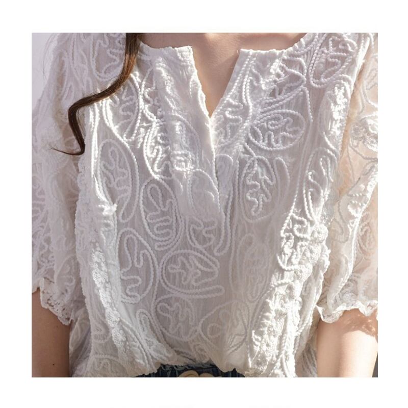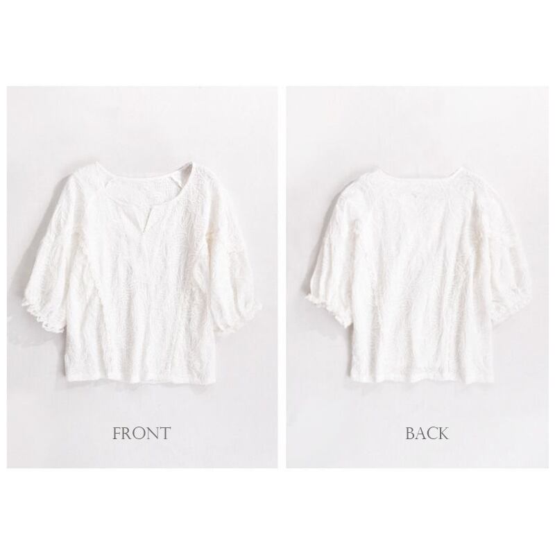 レディース トップス ブラウス シャツ 5分袖 プルオーバー ホワイト 刺繍