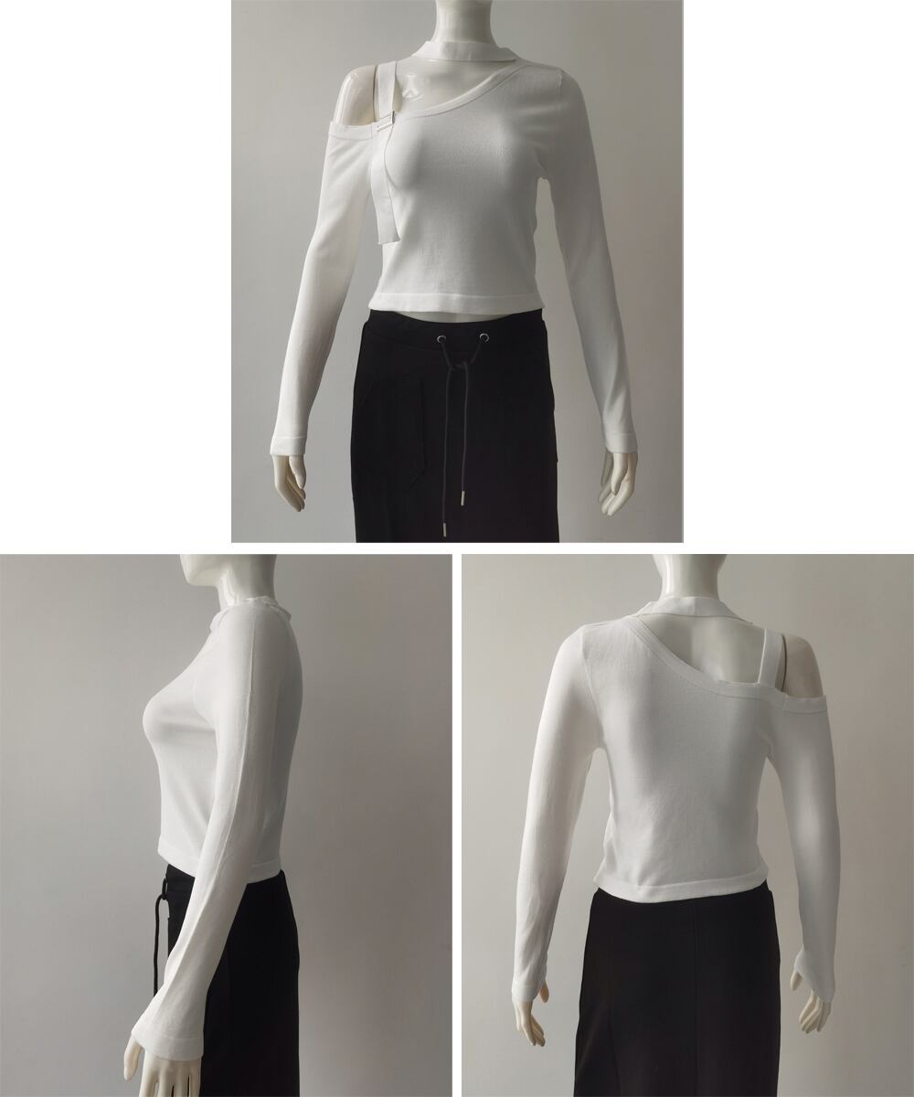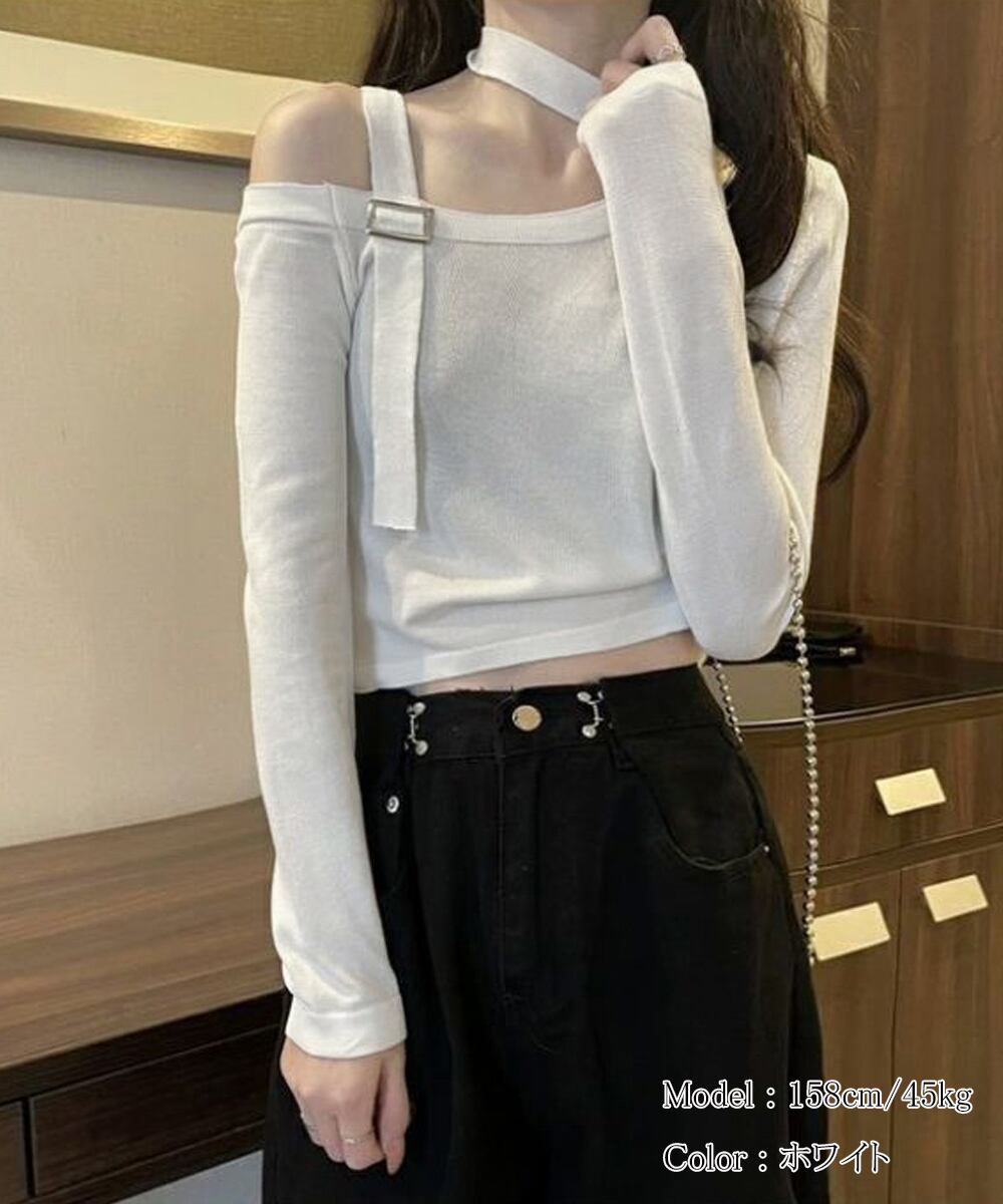 チョーカー風 無地 薄手 肩出しトップス