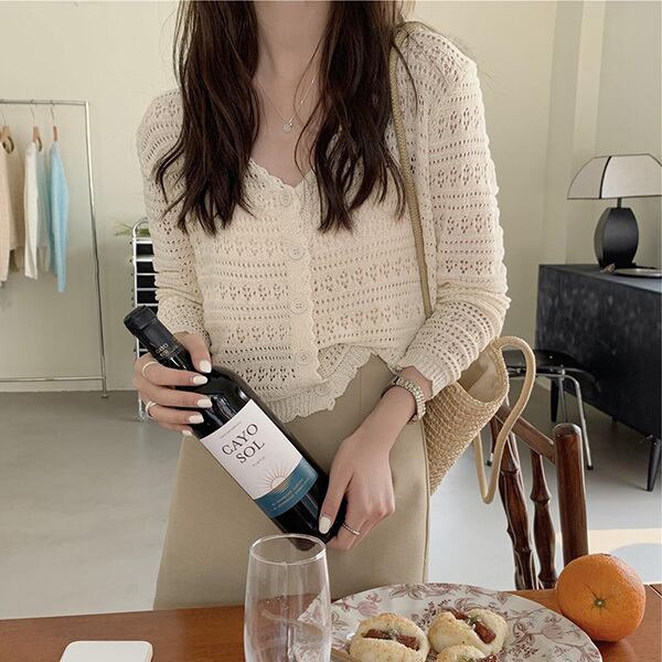 抜け感MAX!透かし編みカーディガン