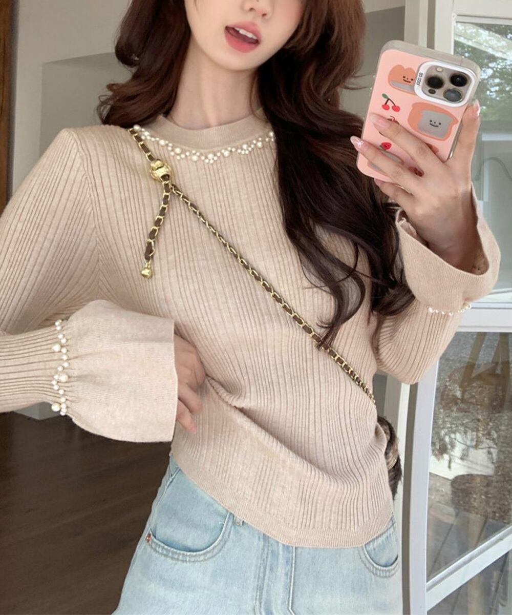 このパール付きニットトップスで、あなたのスタイルに華やかさをプラスし、特別な日々を一層魅力的に演出してみてはいかがでしょうか!