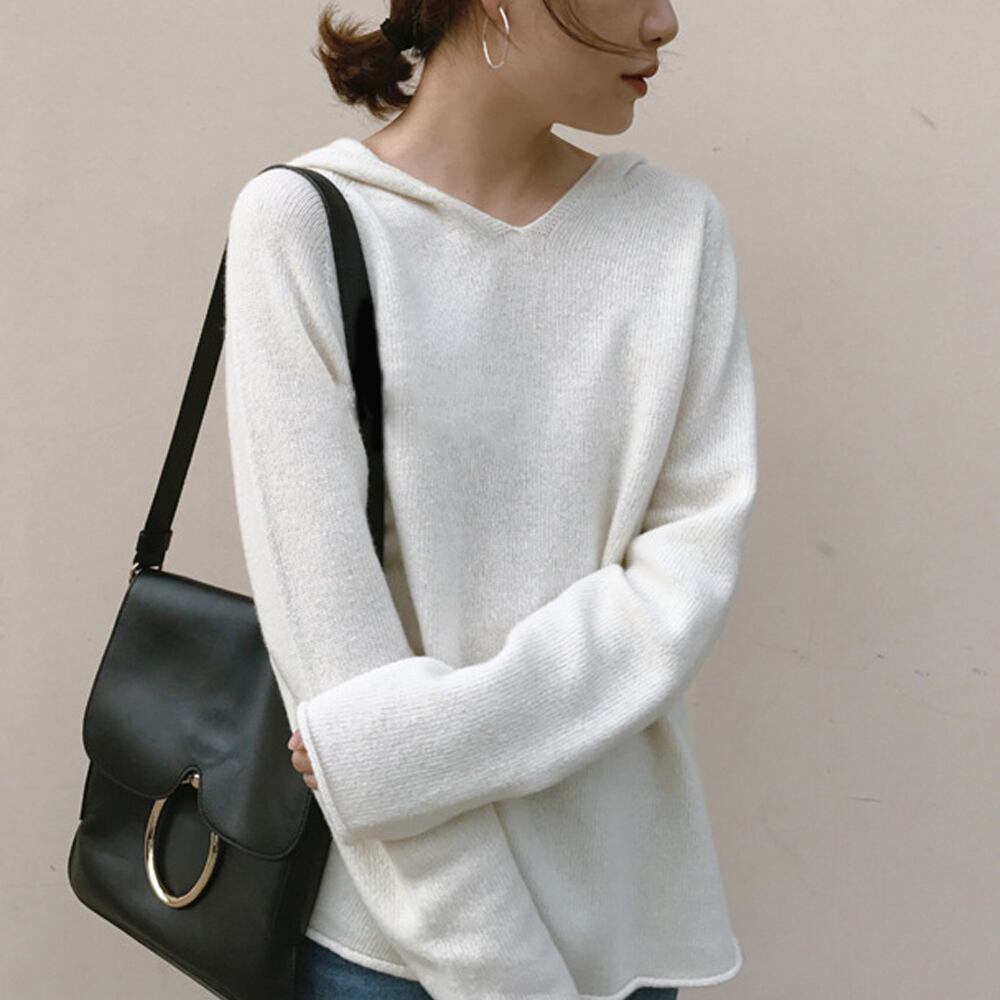 ■多様なコーディネートに最適!シンプルでありながら、着回し力が抜群のこのフード付きニットトップレスは、デニムやスカートと合わせてカジュアルに楽しむことができます。また、シャツやジャケットを重ねれば、より洗練されたスタイルに仕上げることができます。アクセサリーやシューズを変えることで、その日の気分に合わせた様々なスタイルが実現可能です。