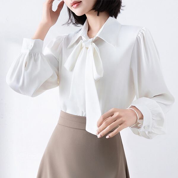 このリボンブラウスで、あなたのスタイルに可愛らしさと洗練されたアクセントを取り入れ、素敵なコーディネートを楽しんでみてはいかがでしょうか!
